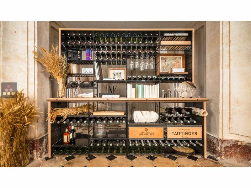 Ce meuble Marchand de Vin, fabriqué en acier peint anti-corrosion, combine des espaces de stockage pouvant accueillir entre 1065 bouteilles, à un généreux comptoir en lamellé-collé de hêtre idéal pour toutes les dégustations.