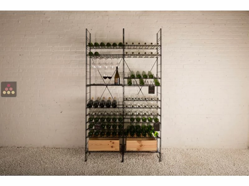 Ce casier à bouteilles métallique de l’Atelier du Vin peut accueillir jusqu’à 396 bouteilles, réparties dans 2 modules comportant chacun 6 clayettes de stockage.