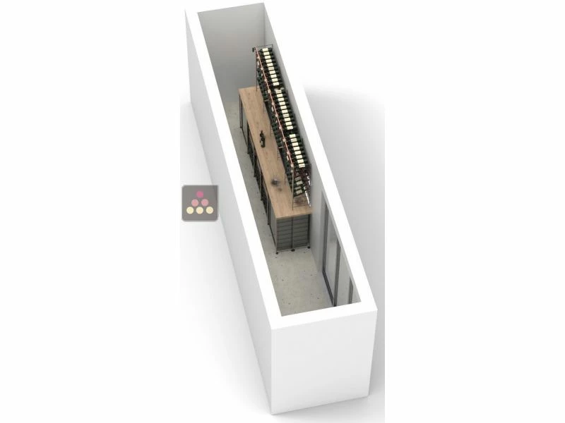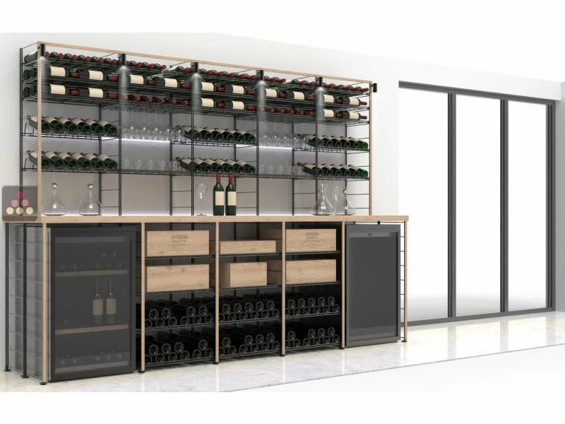 Aménagement de cave Bois et métal pour 486 bouteilles – Fabrication spécifique Marchand de Vin