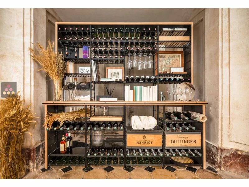 Aménagement de cave Bois et métal pour 986 bouteilles – Fabrication spécifique Marchand de Vin