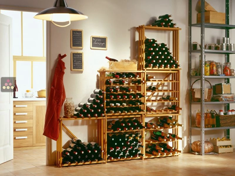 Lot de 6 casiers modulaires en hêtre massif pour 228 Bouteilles