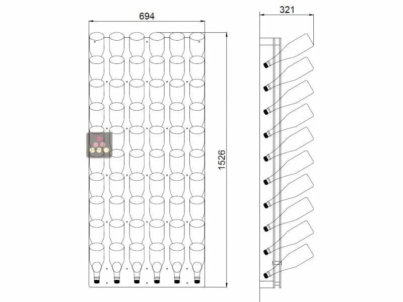 Conçu de façon semi-artisanale, gage de qualité, ce support mural en plexiglas se fixe au mur pour ranger jusqu’à 60 bouteilles de champagne. C’est un produit original et pratique qui vous permettra de créer un mur de bouteilles. L’avantage de ce produit est sa très grande capacité.