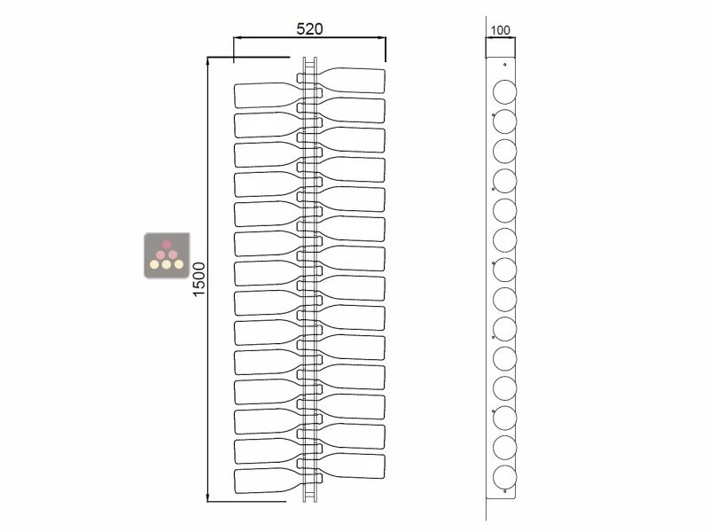 Conçu de façon semi-artisanale, gage de qualité, ce support mural en plexiglas se fixe au mur ou au plafond pour ranger jusqu’à 28 bouteilles de type Bordeaux ou Bourgogne.