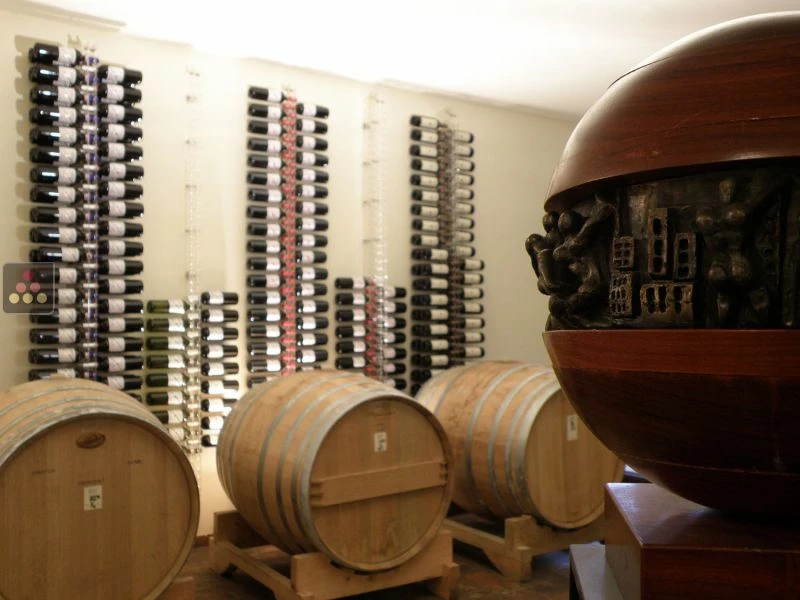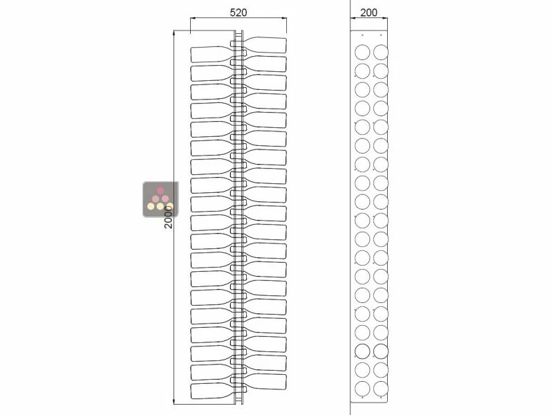 Conçu de façon semi-artisanale, gage de qualité, ce support mural en plexiglas se fixe au mur ou au plafond pour ranger jusqu’à 76 bouteilles de type Bordeaux ou Bourgogne. L’avantage de ce produit est sa grande capacité puisque les bouteilles sont empilées sur deux niveaux.