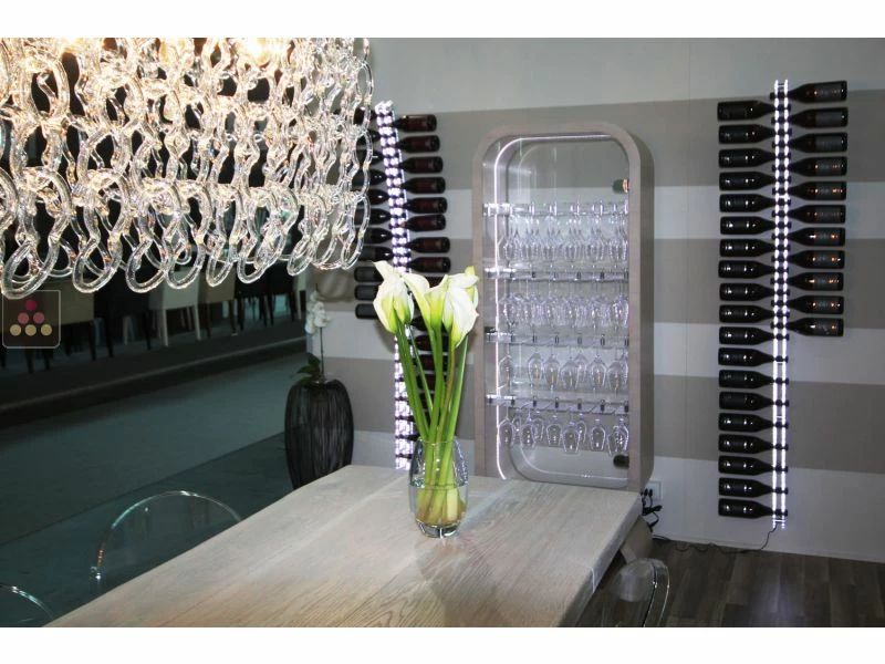 Support mural en plexiglas transparent pour 76 bouteilles (illumination LED optionnelle)