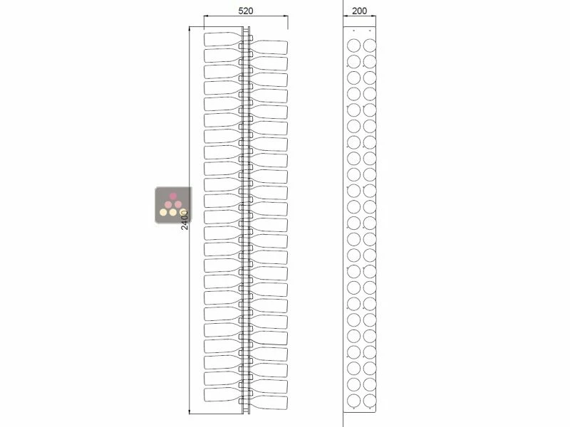 Conçu de façon semi-artisanale, gage de qualité, ce support mural en plexiglas se fixe au mur ou au plafond pour ranger jusqu’à 92 bouteilles de type Bordeaux ou Bourgogne. L’avantage de ce produit est sa grande capacité puisque les bouteilles sont empilées sur deux niveaux.