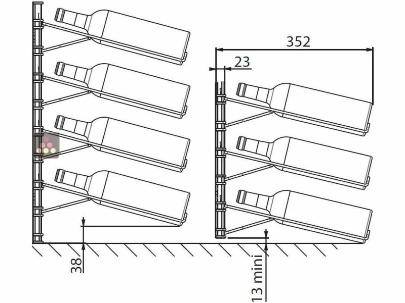 Pratique : cette solution murale innovante vous permet d’entreposer 12 bouteilles traditionnelles dans une cave naturelle ou à l’intérieur de votre maison. L’avantage de ce système est de vous permettre de ranger et classer efficacement vos bouteilles. Les étiquettes sont toujours visibles et l’alignement est parfait.