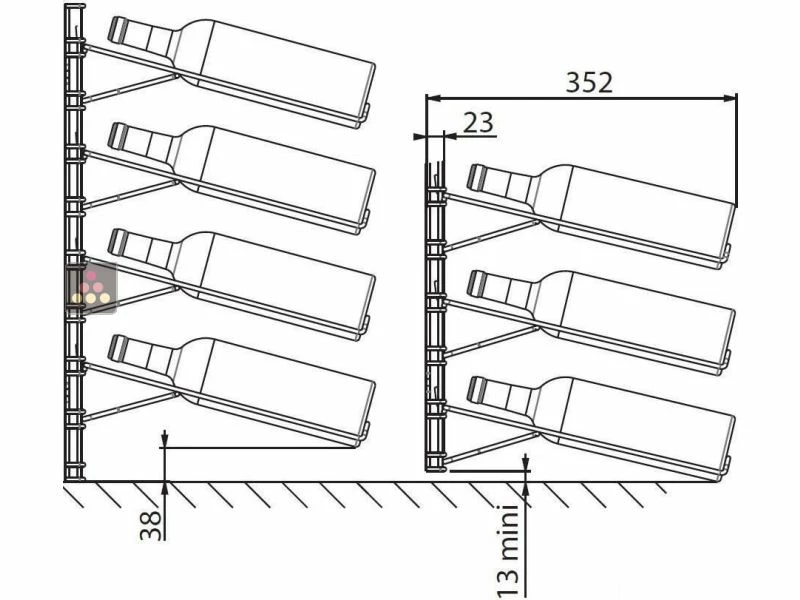 Pratique : cette solution murale innovante vous permet d’entreposer 48 bouteilles traditionnelles dans une cave naturelle ou à l’intérieur de votre maison. L’avantage de ce système est de vous permettre de ranger et classer efficacement vos bouteilles. Les étiquettes sont toujours visibles et l’alignement est parfait.